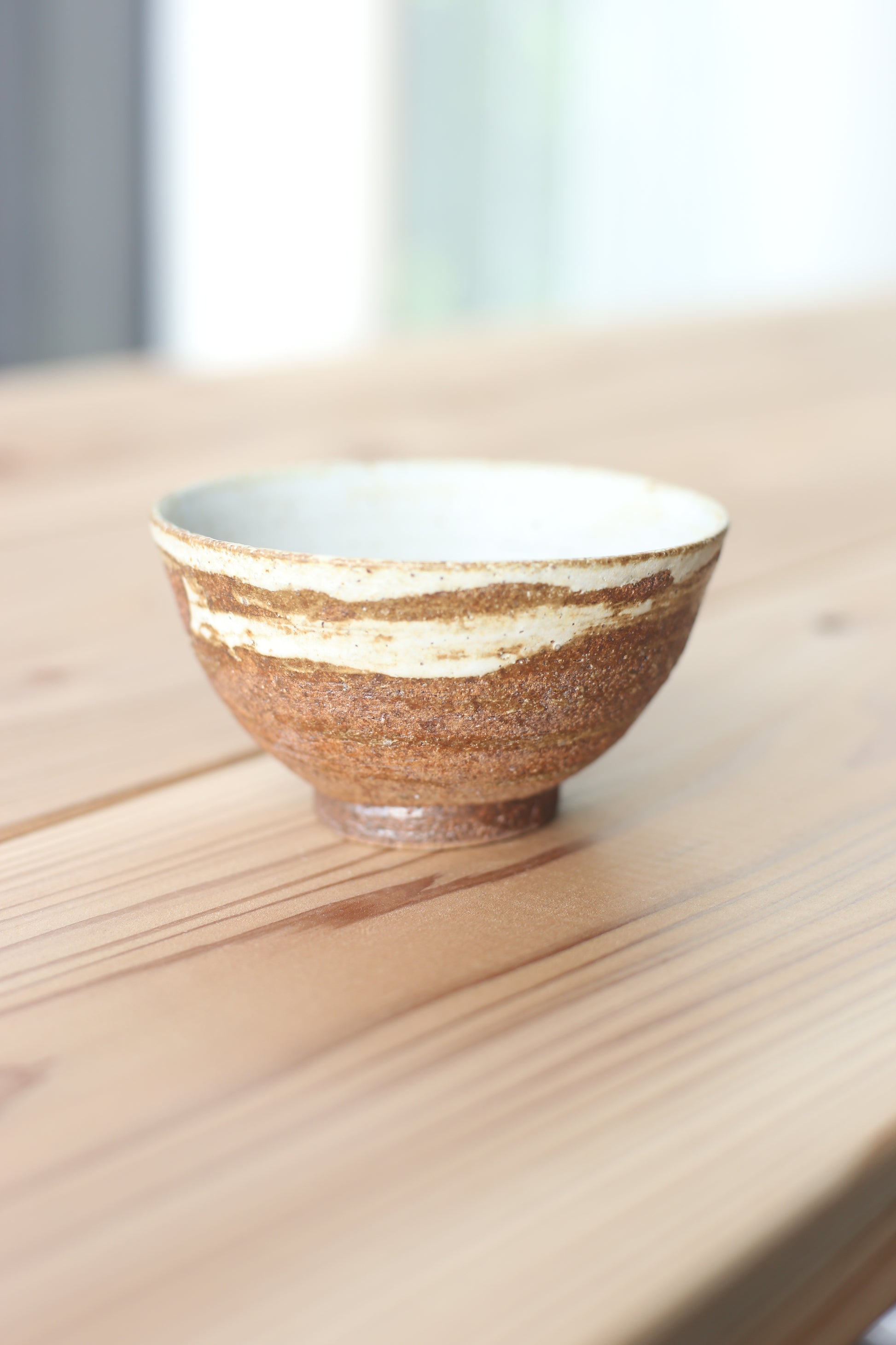 古美山赤土に白マット釉の刷毛目茶碗